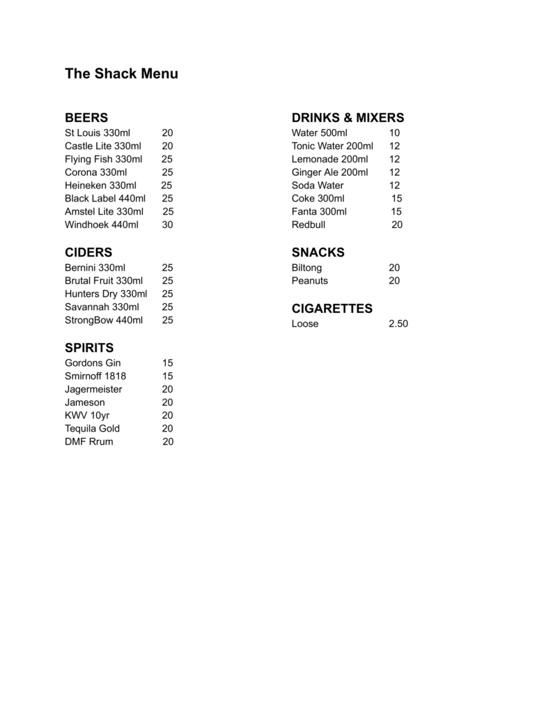 Fri Shack Menu